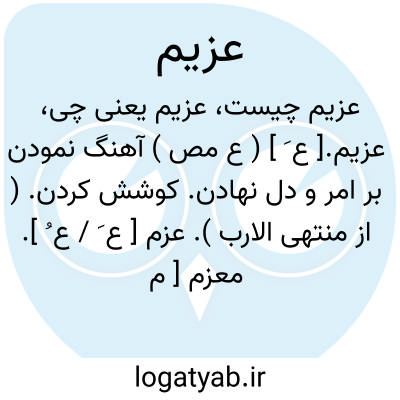 عزیم.[ ع َ ] ( ع مص ) آهنگ نمودن بر امر و دل نهادن. کوشش کردن. ( از منتهی الارب ). عزم [ ع َ / ع ُ ]. معزم [ م َزَ / م َ زِ ]. عُزمان. عَزیمة. رجوع به عزم شود.