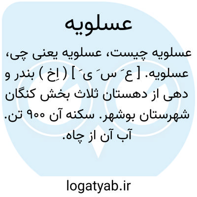 عسلویه. [ ع َ س َ ی َ ] ( اِخ ) بندر و دهی از دهستان ثلاث بخش کنگان شهرستان بوشهر. سکنه آن 900 تن. آب آن از چاه. محصول آن غلات، خرما، تنباکو و پیاز است. لنگرگاه این آبادی در داخل خلیج نای بند و پنج کیلومتر و نیمی ساحل به عمق پنج متر است و برای کشتی های کوچک مناسب میباشد. ( از فرهنگ جغرافیایی ایران ج 7 ).