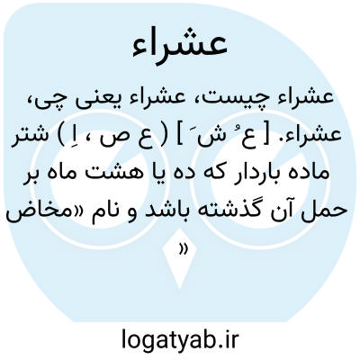 عشراء. [ ع ُ ش َ ] ( ع ص، اِ ) شتر ماده باردار که ده یا هشت ماه بر حمل آن گذشته باشد و نام «مخاض » از او زایل شده. یا ناقه ای که مانند زنان نفساء باشد بعدِ بچه آوردن. ج، عُشَراوات، عِشار. ( از منتهی الارب ) ( از اقرب الموارد ). و تثنیه آن عُشَراوان شود. ( منتهی الارب ). || قُلَه، که از بازیچه های کودکان است. ( از اقرب الموارد ). عویشراء. و رجوع به عویشراء شود. || ج ِ عَشر. ( منتهی الارب ). رجوع به عشر شود.