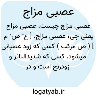 عصبی مزاج. [ ع َ ص َ م ِ ] ( ص مرکب ) کسی که زود عصبانی میشود. کسی که شدیدالتأثر و زودرنج است و در برابر ناملایمات زود از حالت عادی خارج میگردد و تعادل قوای عصبی را از دست میدهد. از نظر پزشکی بیشتر افراد سمپاتیکوتونیک جزو افراد عصبی مزاج هستند. تندمزاج. ( فرهنگ فارسی معین ).