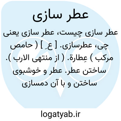 عطرسازی. [ ع ِ ] ( حامص مرکب ) عِطارة. ( از منتهی الارب ). ساختن عطر. عطر و خوشبوی ساختن و با آن دمسازی کردن: