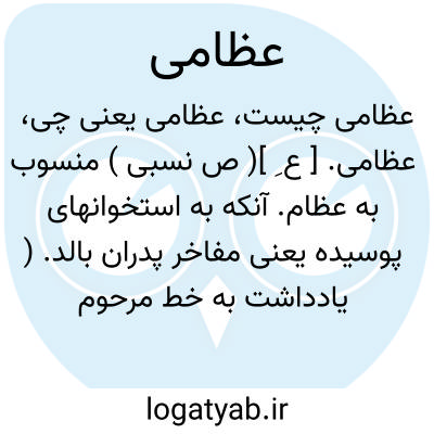 عظامی. [ ع ِ ]( ص نسبی ) منسوب به عظام. آنکه به استخوانهای پوسیده یعنی مفاخر پدران بالد. ( یادداشت به خط مرحوم دهخدا ). مقابل عصامی: اگر به آن نفس و خرد و همت اصل بودی نیکوتر بودی که عظامی و عصامی بس نیکو باشد ولیکن عظامی به یک پشیز نیرزد چون فضل و ادب و درس ندارد. ( تاریخ بیهقی ص 415 ). رجوع به عصامی شود.