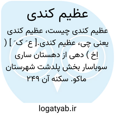 عظیم کندی.[ ع َ ک َ ] ( اِخ ) دهی از دهستان ساری سوباسار بخش پلدشت شهرستان ماکو. سکنه آن 249 تن است. آب آن از ساری سو و زنکمار و محصول آن غلات، پنبه، توتون، کرچک، کنجد و حبوبات است. ( از فرهنگ جغرافیایی ایران ج 4. )