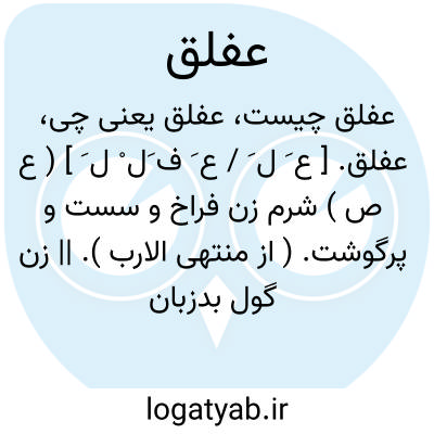 عفلق. [ ع َ ل َ / ع َ ف َل ْ ل َ ] ( ع ص ) شرم زن فراخ و سست و پرگوشت. ( از منتهی الارب ). || زن گول بدزبان بدکردار. ( منتهی الارب ) ( از اقرب الموارد ). و لام آن را زائد دانسته اند. ( از اقرب الموارد ).