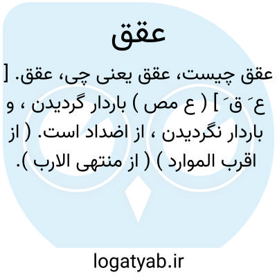عقق. [ ع ُ ق ُ ] ( ع ص، اِ ) ناقه باردار. ج، عِقاق. || ج ِ عَقوق. ( منتهی الارب ). ج ِ عقوق، و جمع آن عِقاق است.( از اقرب الموارد ). || بمعنی عُقَق و عاق. رجوع به عُقَق شود. || دشمنان دور. || قطعکنندگان صله رحم. ( از اقرب الموارد ).