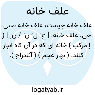 علف خانه. [ ع َ ل َ ن َ / ن ِ ] ( اِ مرکب ) خانه ای که در آن کاه انبار کنند. ( بهار عجم ) ( آنندراج ). || کنایه از دنیا و عالم کون و فساد است. ( برهان ) ( ناظم الاطباء ) ( آنندراج ).