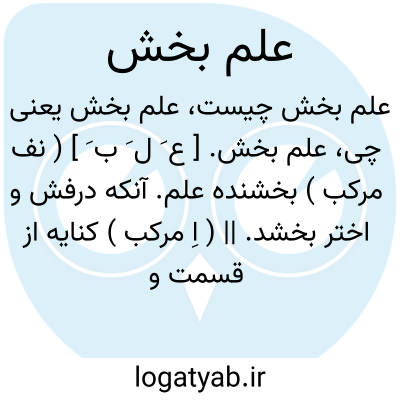 علم بخش. [ ع َ ل َ ب َ ] ( نف مرکب ) بخشنده علم. آنکه درفش و اختر بخشد. || ( اِ مرکب ) کنایه از قسمت و حصه و بخشی است از غنایم، که به سپاهیانی که در زیر علم حاضر بوده اند، دهند. ( برهان قاطع ) ( از آنندراج ) ( از ناظم الاطباء ).