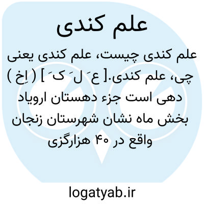 علم کندی.[ ع َ ل َ ک َ ] ( اِخ ) دهی است جزء دهستان ارویاد بخش ماه نشان شهرستان زنجان واقع در 40 هزارگزی شمال باختری ماه نشان و 30 هزارگزی راه عمومی. ناحیه ایست کوهستانی و سردسیر. سکنه آن 699 تن است. آب آن از رودخانه محلی تأمین میشود. شغل اهالی زراعت و گله داری است. محصول آن غلات، بنشن، انگور، و لبنیات و عسل است. راه آن مالرو است. ( از فرهنگ جغرافیایی ایران ج 2 ).