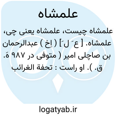 علمشاه. [ ع َ ل َ] ( اِخ ) عبدالرحمان بن صاچلی امیر ( متوفی در 987 هَ. ق. ). او راست: تحفة الغرائب، به فارسی در خواص اشیاء و انواع حیل مشتمل بر 35 باب. و نیز تعلیقی بر شرح وقایه صدرالشریعه ثانی دارد. ( از کشف الظنون ).