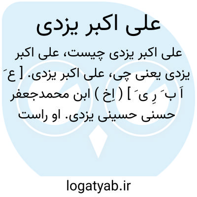 علی اکبر یزدی. [ ع َ اَ ب َ رِ ی َ ] ( اِخ ) ابن محمدجعفر حسنی حسینی یزدی. او راست: 1 - تفسیر القرآن که کامل نیست. 2 - شرح تهذیب المنطق. 3 - شرخ خطبه زهرا ( ع ). 4 - شرح خطبه شقشقیة. 5 - نخبةالمیزان فی اللغة که در سال 1288 هَ. ق. در تهران به چاپ رسیده است. ( از معجم المؤلفین بنقل از اعیان الشیعة ج 41 ص 84 ).
