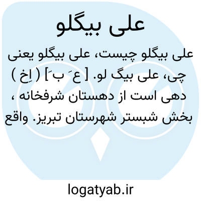 علی بیگ لو. [ ع َ ب َ] ( اِخ ) دهی است از دهستان شرفخانه، بخش شبستر شهرستان تبریز. واقع در 16 هزارگزی باختر شبستر و 3 هزارگزی راه شوسه صوفیان سلماس به اسکله شرفخانه. ناحیه ای است جلگه و دارای آب و هوای معتدل و 564 تن سکنه. آب آن از چشمه تأمین می شود. و محصول آن غلات و حبوب است. اهالی به زراعت و گله داری اشتغال دارند. و راه آن ارابه رو است. ( از فرهنگ جغرافیایی ایران ج 4 ).