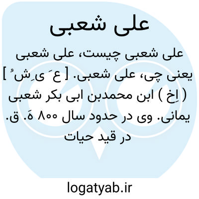 علی شعبی. [ ع َ ی ِش ُ ] ( اِخ ) ابن محمدبن ابی بکر شعبی یمانی. وی در حدود سال 800 هَ. ق. در قید حیات بود. او راست: الاربعون فی فضل الائمة العادلین والسلاطین المقسطین. ( از معجم المؤلفین از هدیة العارفین بغدادی ج 1 ص 727 ).