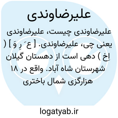علیرضاوندی. [ ع َ رِ وَ ] ( اِخ ) دهی است از دهستان گیلان شهرستان شاه آباد. واقع در 18 هزارگزی شمال باختری گیلان، و یک هزارگزی جنوب راه شوسه گیلان به قصرشیرین. ناحیه ای است دشت و گرمسیر و مالاریایی و دارای 150 تن سکنه. آب آن از رودخانه گیلان تأمین می شود. محصول آن غلات، برنج، توتون، حبوب، پنبه، صیفی و لبنیات است. اهالی به زراعت و گله داری اشتغال دارند. این ده در دو محل مشهور به بالا و پایین واقع شده است و ساکنان آن از طایفه کلهر می باشند. ( از فرهنگ جغرافیایی ایران ج 5 ).