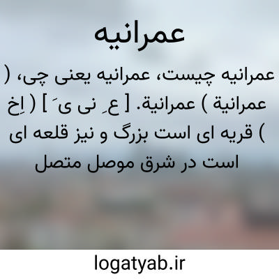 ( عمرانیة ) عمرانیة. [ ع ِ نی ی َ ] ( اِخ ) قریه ای است بزرگ و نیز قلعه ای است در شرق موصل متصل بناحیه شوش و مرج. در آن دیهها و درختهای مو وجوددارد. این قلعه اکنون مشرف به ویرانی است و از آن چیزی باقی نمانده و در آن غاری است که گویند غار داودبوده است و آن را زیارت کنند. ( از معجم البلدان ).