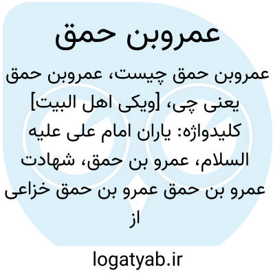 💡 59) عمروبن حمق: از بزرگان شيعه و ياوران اميرالمؤ منين عليه السلام است، همراهحضرت در جنگ جمل، صفين و نهروان شركت كرد و درسال 50 هجرى به دست معاويه به شهادت رسيد. سفينة البحار 2/260.