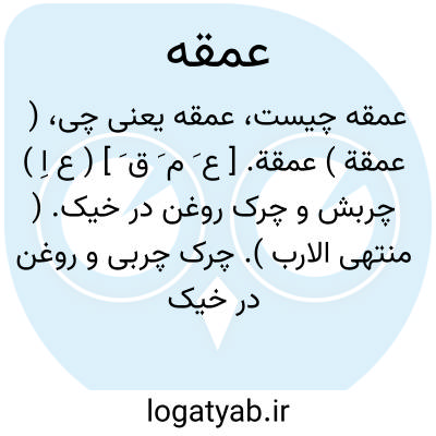 ( عمقة ) عمقة. [ ع َ م َ ق َ ] ( ع اِ ) چربش و چرک روغن در خیک. ( منتهی الارب ). چرک چربی و روغن در خیک و کوزه. ( از اقرب الموارد ).
