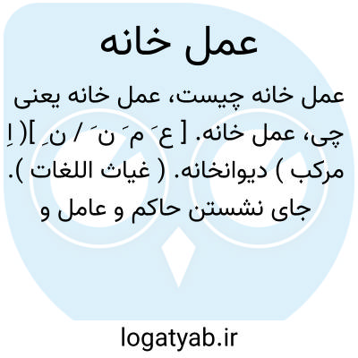 عمل خانه. [ ع َ م َ ن َ / ن ِ ]( اِ مرکب ) دیوانخانه. ( غیاث اللغات ). جای نشستن حاکم و عامل و دیوانخانه. و آن را در عرف هندوستان «کچهری » گویند. ( آنندراج ). رجوع به عمل شود: