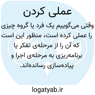 عملی کردن به معنای تبدیل نظریه، برنامه یا ایده به عمل و اجرا در واقعیت است. وقتی میگوییم یک فرد یا گروه چیزی را عملی کرده است، منظور این است که آن را از مرحلهی تفکر یا برنامهریزی به مرحلهی اجرا و پیادهسازی رساندهاند. این مفهوم در زندگی روزمره، کارهای حرفهای، تحصیلی و حتی در حوزهی اخلاق و رفتارهای اجتماعی کاربرد گستردهای دارد.