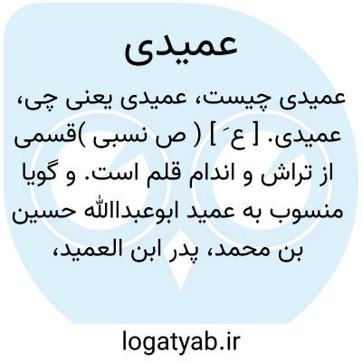 عمیدی. [ ع َ ] ( ص نسبی )قسمی از تراش و اندام قلم است. و گویا منسوب به عمید ابوعبداﷲ حسین بن محمد، پدر ابن العمید، و یا منسوب به ذوالکفایتین ابن العمید علی بن محمد که وزیر رکن الدوله بود، باشد. رجوع به نوروزنامه ص 94 و 151 شود.