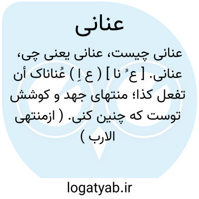عنانی. [ ع ُ نا ] ( ع اِ ) عُناناک أن تفعل کذا؛ منتهای جهد و کوشش توست که چنین کنی. ( ازمنتهی الارب ) ( از ناظم الاطباء ) ( از اقرب الموارد ).