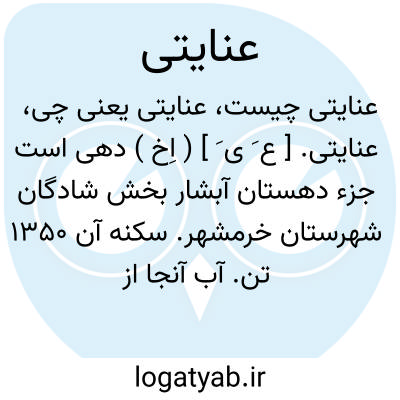 عنایتی. [ ع َ ی َ ] ( اِخ ) دهی است جزء دهستان آبشار بخش شادگان شهرستان خرمشهر. سکنه آن 1350 تن. آب آنجا از رودخانه جراحی و محصول آن غلات، برنج و خرماست. ( از فرهنگ جغرافیائی ایران ج 6 ).