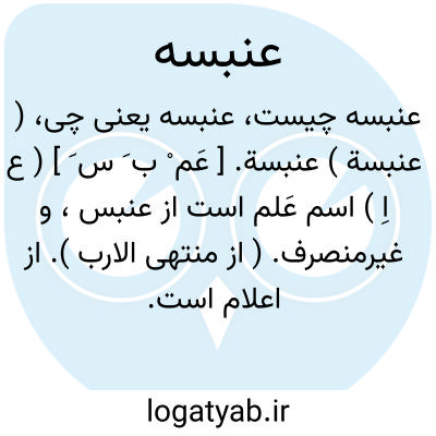 ( عنبسة ) عنبسة. [ عَم ْ ب َ س َ ] ( ع اِ ) اسم عَلم است از عنبس، و غیرمنصرف. ( از منتهی الارب ). از اعلام است. ( ناظم الاطباء ). علم است اسد را، و غیرمنصرف میباشد، چون اسامة. ( از اقرب الموارد ). ج، عَنابِس. ( ناظم الاطباء ).