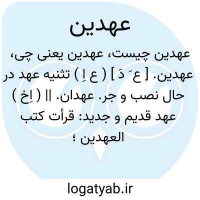 عهدین. [ ع َ دَ ] ( ع اِ ) تثنیه عهد در حال نصب و جر. عهدان. || ( اِخ ) عهد قدیم و جدید: قرأت کتب العهدین؛ کتابهای عهد قدیم و عهد جدید را خواندم. ( از اقرب الموارد ). و رجوع به عهد قدیم و عهد عتیق و عهد جدید شود.