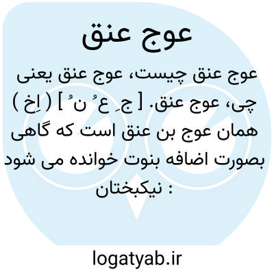 عوج عنق. [ ج ِ ع ُ ن ُ ] ( اِخ ) همان عوج بن عنق است که گاهی بصورت اضافه بنوت خوانده می شود: