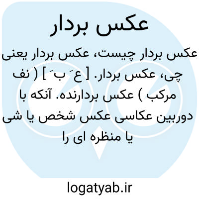 عکس بردار. [ ع َ ب َ ] ( نف مرکب ) عکس بردارنده. آنکه با دوربین عکاسی عکس شخص یا شی یا منظره ای را گیرد. ( فرهنگ فارسی معین ). عکاس.
