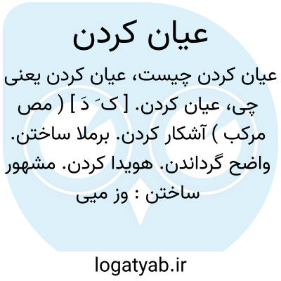 عیان کردن. [ ک َ دَ ] ( مص مرکب ) آشکار کردن. برملا ساختن. واضح گرداندن. هویدا کردن. مشهور ساختن: