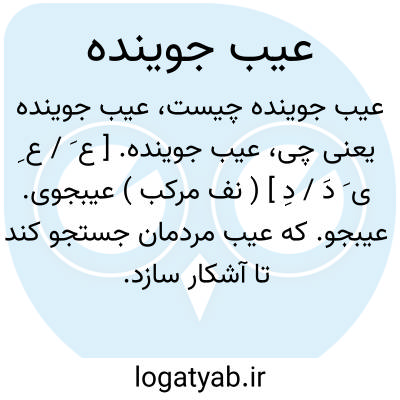 عیب جوینده. [ ع َ / ع ِ ی َ دَ / دِ ] ( نف مرکب ) عیبجوی. عیبجو. که عیب مردمان جستجو کند تا آشکار سازد. رجوع به عیب جو و عیب جوی شود: