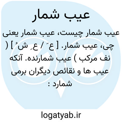 عیب شمار. [ ع َ / ع ِ ش ُ ] ( نف مرکب ) عیب شمارنده. آنکه عیب ها و نقائص دیگران برمی شمارد:
