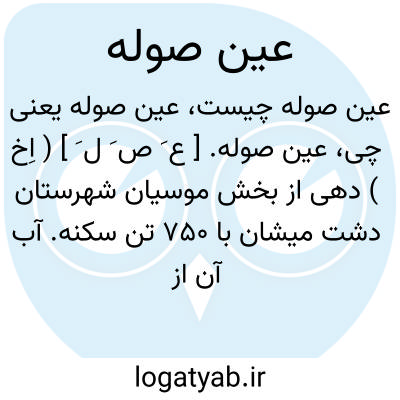 عین صوله. [ ع َ ص َ ل َ ] ( اِخ ) دهی از بخش موسیان شهرستان دشت میشان با 750 تن سکنه. آب آن از چشمه. محصول آن غلات و لبنیات است. ساکنان این ده از طایفه عرب حرسان هستند. ( از فرهنگ جغرافیایی ایران ج 6 ).