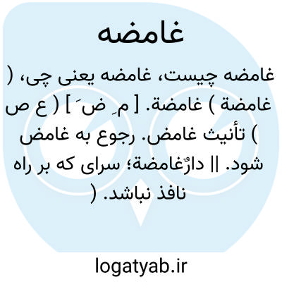 لغت نامه دهخدا ( غامضة ) غامضة. [ م ِ ض َ ] ( ع ص ) تأنیث غامض. رجوع به غامض شود. || دارٌغامضة؛ سرای که بر راه نافذ نباشد. ( منتهی الارب ).