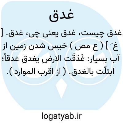 غدق. [ غ َ ] ( ع مص ) خیس شدن زمین از آب بسیار: غَدَقَت الارض یغدق غدقاً؛ ابتلّت بالغدق. ( از اقرب الموارد ).