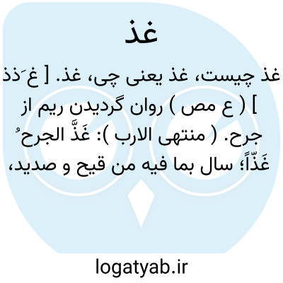 غذ. [ غ َذذ ] ( ع مص ) روان گردیدن ریم از جرح. ( منتهی الارب ): غَذَّ الجرح ُ غَذّاً؛ سال بما فیه من قیح و صدید، تقول: ترکت جرحه یغذ. ( اقرب الموارد ). || آماسیدن و ریم کردن جرح. ( منتهی الارب ).