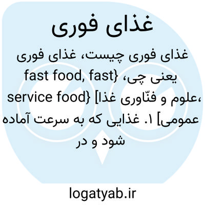 {fast food, fast service food} [علوم و فنّاوری غذا، عمومی] 1. غذایی که به سرعت آماده شود و در اختیار مشتری قرار گیرد 2. غذاخوری عرضهکنندۀ غذای فوری