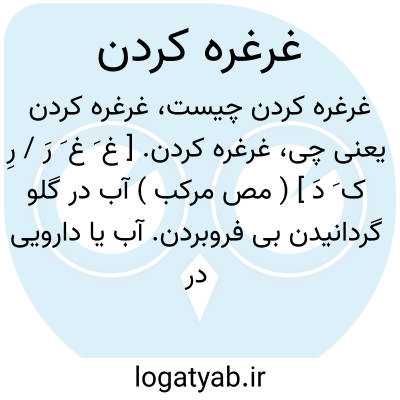 غرغره کردن. [ غ َ غ َ رَ / رِ ک َ دَ ] ( مص مرکب ) آب در گلو گردانیدن بی فروبردن. آب یا دارویی در گلو گردانیدن برای شستن و پاک کردن دهان یا برای دفع بیماری. عمل غرغره. رجوع به غرغرة شود.