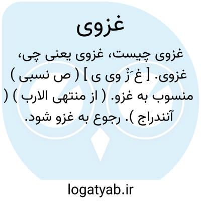 غزوی. [ غ َزْ وی ی ] ( ص نسبی ) منسوب به غزو. ( از منتهی الارب ) ( آنندراج ). رجوع به غزو شود.