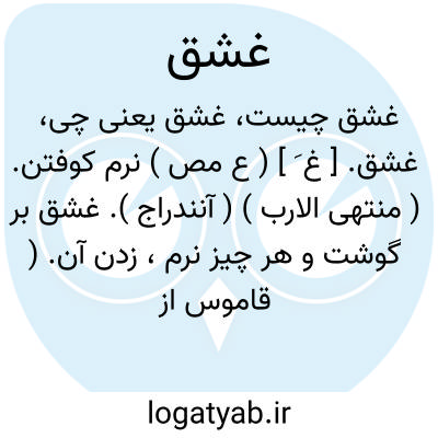 غشق. [ غ َ ] ( ع مص ) نرم کوفتن. ( منتهی الارب ) ( آنندراج ). غشق بر گوشت و هر چیز نرم، زدن آن. ( قاموس از اقرب الموارد ).