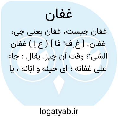 غفان. [ غ ِف ْ فا ] ( ع اِ ) غفان الشی ٔ؛ وقت آن چیز. یقال: جاء علی غفانه؛ ای حینه و ابّانه، یا درست آن به مهمله است چنانکه گذشت. ( از منتهی الارب ). رجوع به عفان شود.