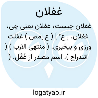 غفلان. [ غ ُ ] ( ع اِمص ) غفلت ورزی و بیخبری. ( منتهی الارب ) ( آنندراج ). اسم مصدر از غَفَل. ( از اقرب الموارد ). || ( ص ) غافل. ( اقرب الموارد ). بی اندیشه و غافل و بیخبر و بی پروا. ( ناظم الاطباء ).