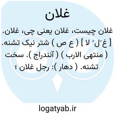 غلان. [ غ َل ْ لا ] ( ع ص ) شتر نیک تشنه. ( منتهی الارب ) ( آنندراج ). سخت تشنه. ( دهار ): رجل غلان؛ مردی سخت تشنه، و اشتر را نیز گویند. ( مهذب الاسماء ). الغلان من الجمال، الغال. ( اقرب الموارد ).
