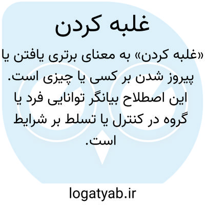 «غلبه کردن» به معنای برتری یافتن یا پیروز شدن بر کسی یا چیزی است. این اصطلاح بیانگر توانایی فرد یا گروه در کنترل یا تسلط بر شرایط است. وقتی می‌گوییم کسی بر مشکلی غلبه کرده است، منظور این است که توانسته بر موانع و دشواری‌ها فائق آید و راه‌حل مناسبی پیدا کند.  این واژه هم در امور فردی و هم در موقعیت‌های جمعی به کار می‌رود و می‌تواند نشان‌دهنده موفقیت در مقابله با مشکلات، دشمنان یا چالش‌ها باشد. «غلبه کردن» همچنین در نبردها و رقابت‌ها معنای فیزیکی و واقعی دارد و به معنای پیروز شدن بر حریف یا دشمن به صورت عملی و ملموس است. در زندگی روزمره، این اصطلاح به غلبه بر احساسات منفی مانند ترس، خشم یا ناامیدی نیز اشاره دارد. کسی که بر احساسات خود غلبه می‌کند، کنترل بیشتری بر رفتار و تصمیمات خود دارد. به طور کلی، «غلبه کردن» به معنای پیروز شدن، برتری یافتن یا کنترل شرایط است. این واژه یادآور اراده، تلاش و موفقیت در مقابله با مشکلات و چالش‌ها می‌باشد.