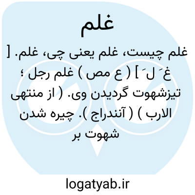 غلم. [ غ َ ل ِ ] ( ع ص ) مرد تیزشهوت. ( منتهی الارب ) ( آنندراج ). غِلّیم. مُغتَلِم. ( اقرب الموارد ).