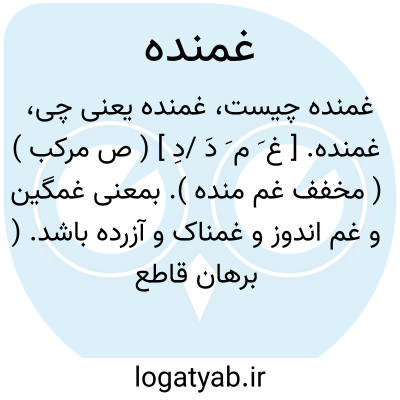 غمنده. [ غ َ م َ دَ /دِ ] ( ص مرکب ) ( مخفف غم منده ). بمعنی غمگین و غم اندوز و غمناک و آزرده باشد. ( برهان قاطع ). غمناک. ( انجمن آرا ) ( آنندراج ) ( فرهنگ رشیدی ). اندوهگین. ( فرهنگ اوبهی ). حزین. محزون. غمین. مغموم. مهموم: