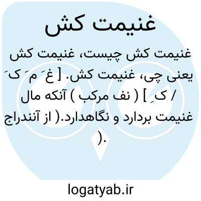 غنیمت کش. [ غ َ م َ ک َ / ک ِ ] ( نف مرکب ) آنکه مال غنیمت بردارد و نگاهدارد.( از آنندراج ). غنیمت کشنده. حامل غنیمت: