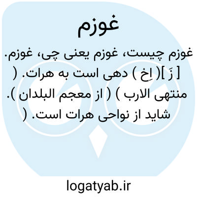 غوزم. [ زَ ]( اِخ ) دهی است به هرات. ( منتهی الارب ) ( از معجم البلدان ). شاید از نواحی هرات است. ( از انساب سمعانی ).