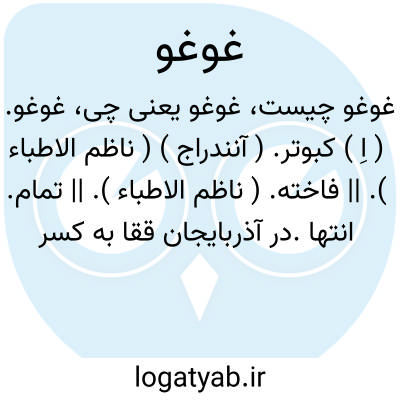 غوغو. ( اِ ) کبوتر. ( آنندراج ) ( ناظم الاطباء ). || فاخته. ( ناظم الاطباء ). || تمام. انتها.در آذربایجان ققا به کسر اول و تشدید دوم به کسی گویند که در بازی نوبت وی آخر و بعد از دیگران باشد.