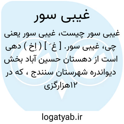 غیبی سور. [ غ َ ] ( اِخ ) دهی است از دهستان حسین آباد بخش دیواندره شهرستان سنندج، که در 12هزارگزی جنوب دیواندره و یکهزارگزی خاور دیواندره به سنندج قرار دارد.کوهستانی و سردسیر است. سکنه آن 260 تن کردزبان هستند. آب آن از رودخانه قزل اوزن و چشمه تأمین میشود. محصول آن غلات، حبوبات، لبنیات، توتون و شغل اهالی زراعت و گله داری است. راه مالرو دارد. در تابستان میتوان اتومبیل برد. ( از فرهنگ جغرافیایی ایران ج 5 ).
